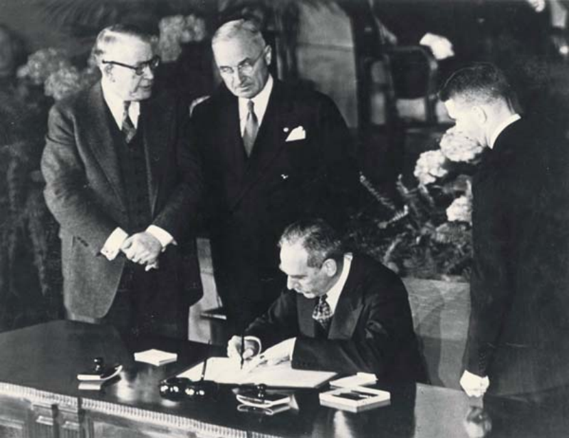 ▎1949年4月4日,时任美国国务卿艾奇逊签署北约条约。图源:The Altantic Council