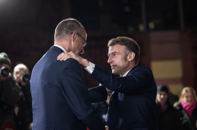 ▎2026年1月20日,德国总理默茨和法国总统马克龙承诺开展合作以解决特朗普造成的危机。图源:Getty Images